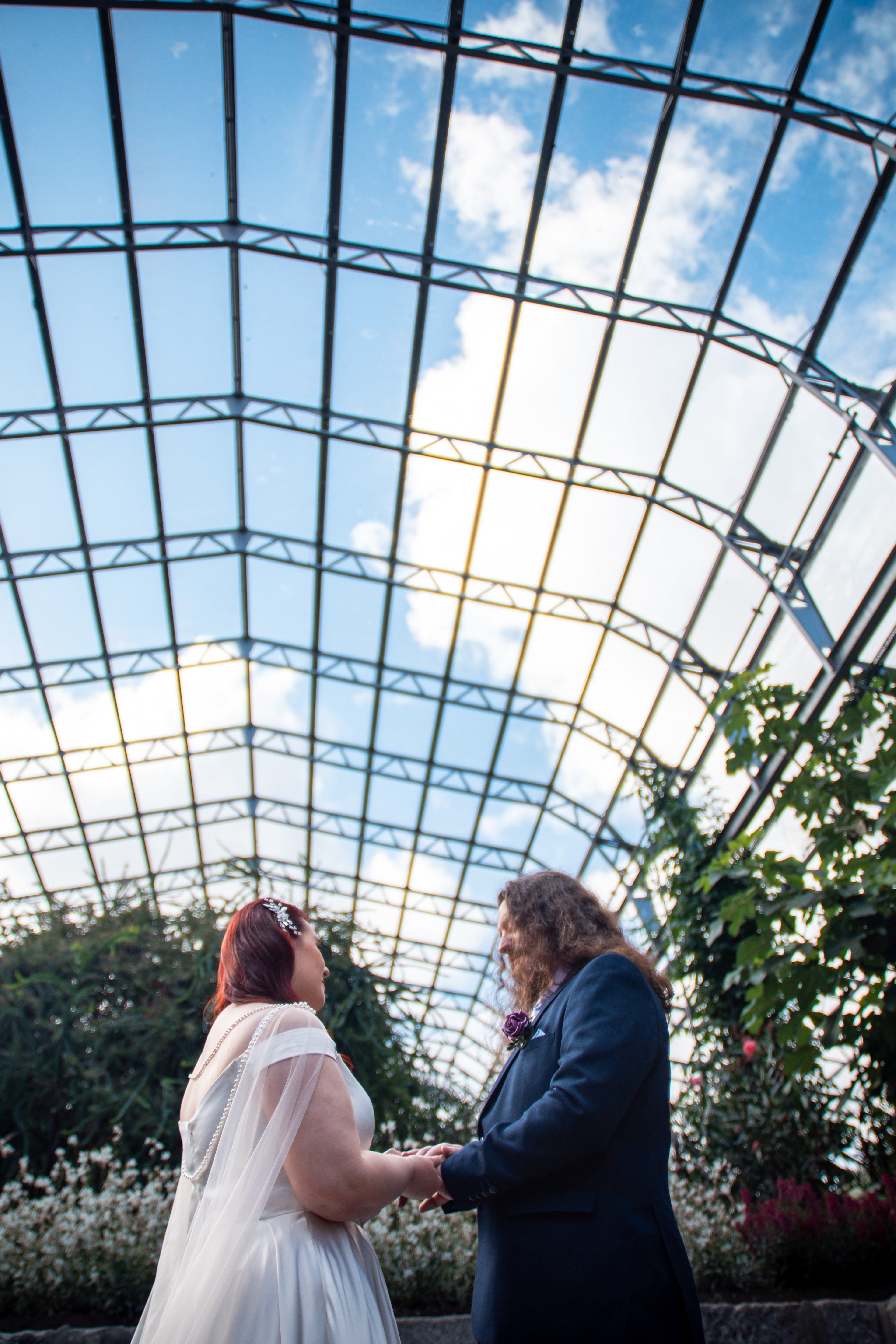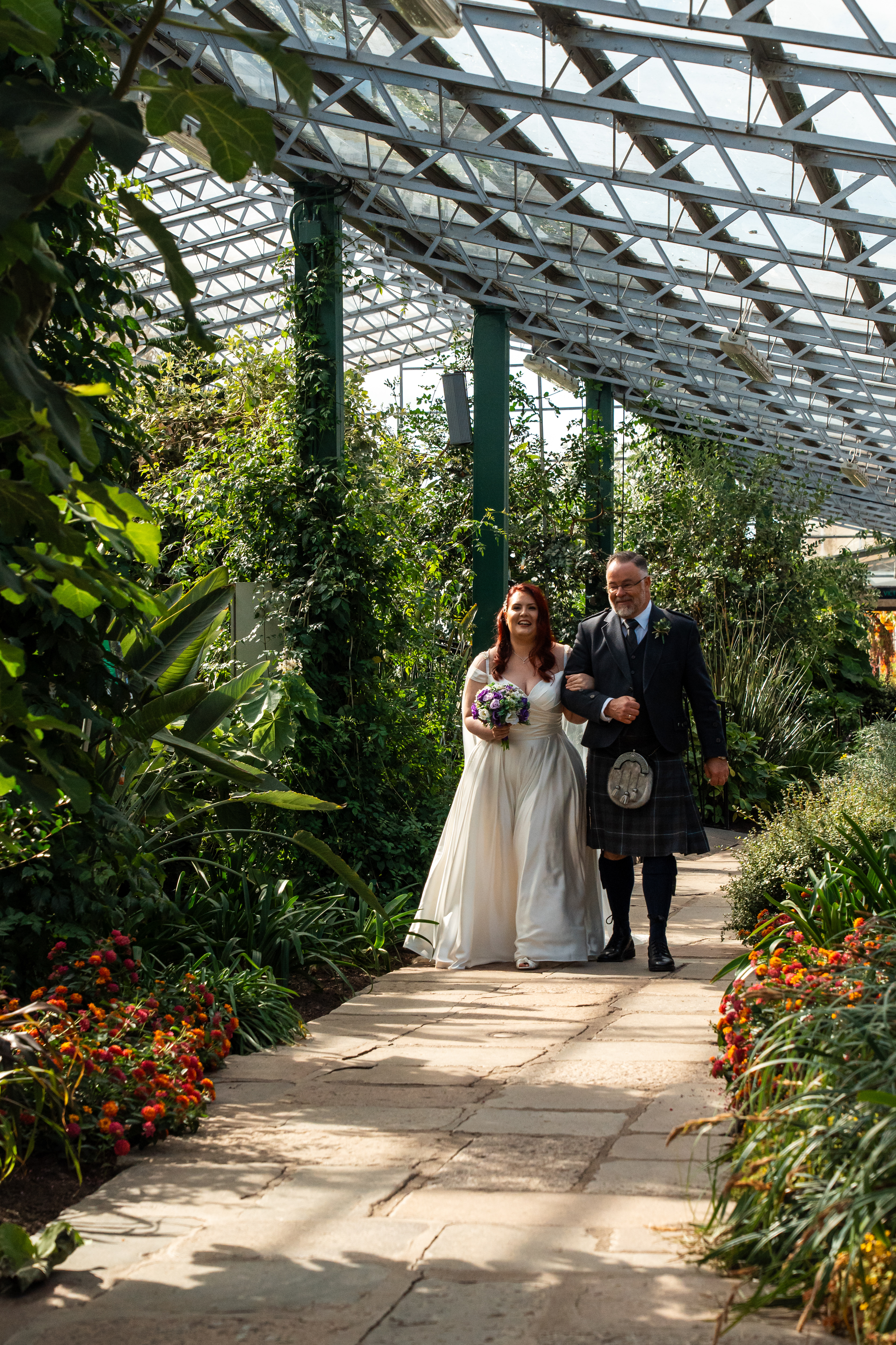 Their ceremony was held in the beautiful David Welch Winter Gardens within Aberdeen's Duthie Park. Conducted by a registrar, it included a traditional handfasting.